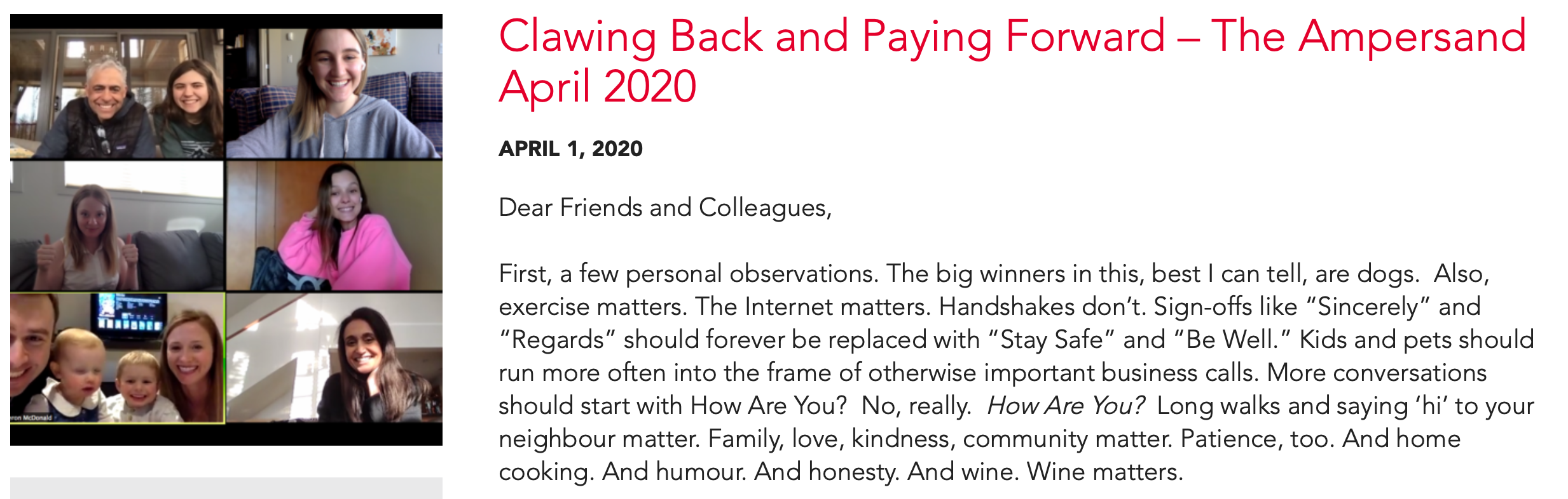 Our Podcast, The Ampersand: Unplugged ? Keep it. Consummated during Covid, it’s working; a great way to have impactful conversations with fascinating people about topics of interest and with thousands of downloads it’s clearly resonating.