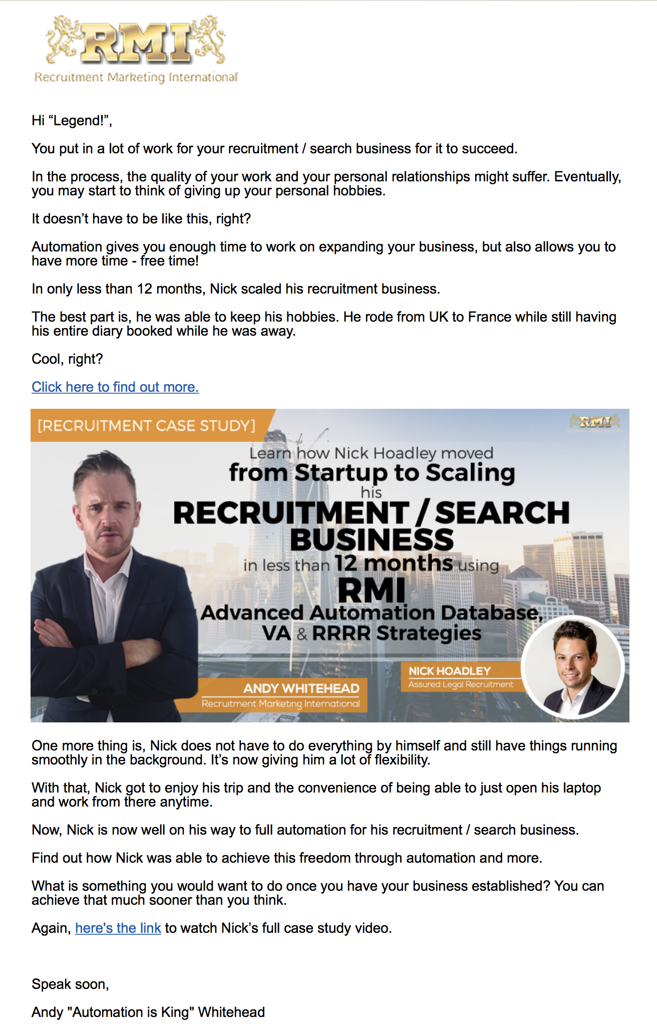 And sure, Andy “Automation is King” Whitehead spams me with the tantalizing prospect of being able to achieve freedom through automation of my search business, like Nick Hoadley did(!!).